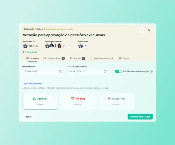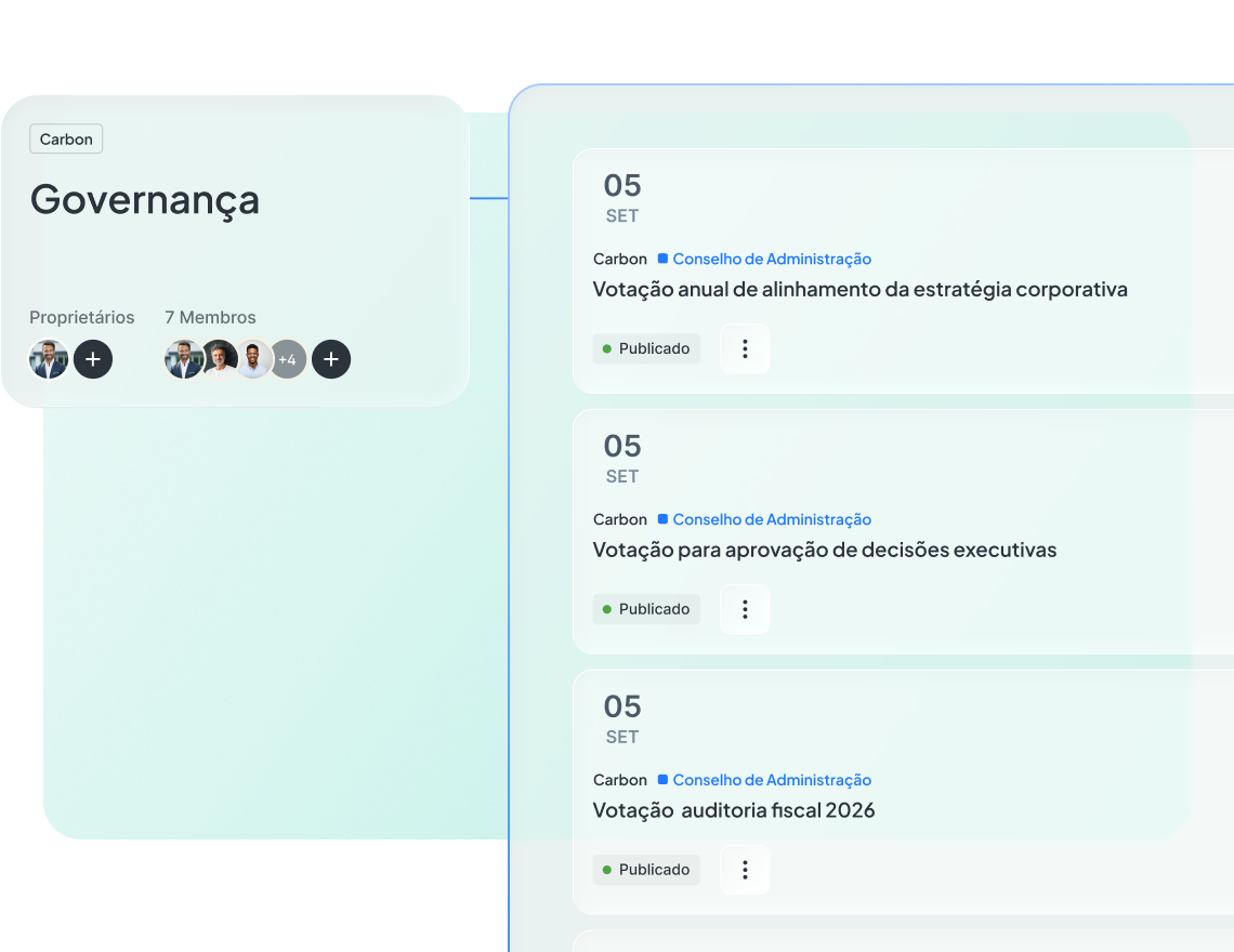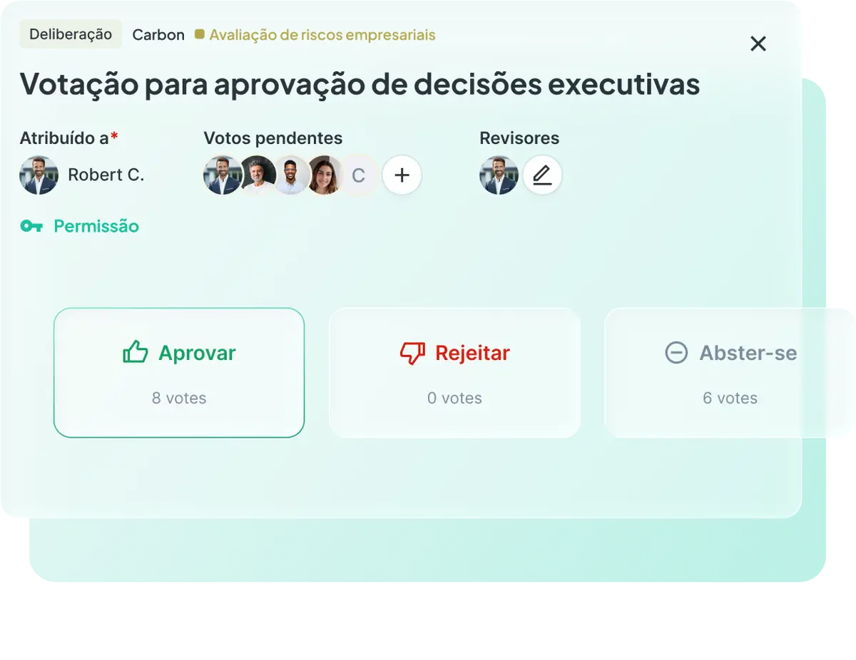 Após cada decisão do conselho, o trabalho da secretaria de governança é o mesmo: coletar assinaturas, documentar quem votou e como, compilar evidências para os arquivos de compliance. Tudo isso acontece depois que a reunião termina — e é inteiramente manual.